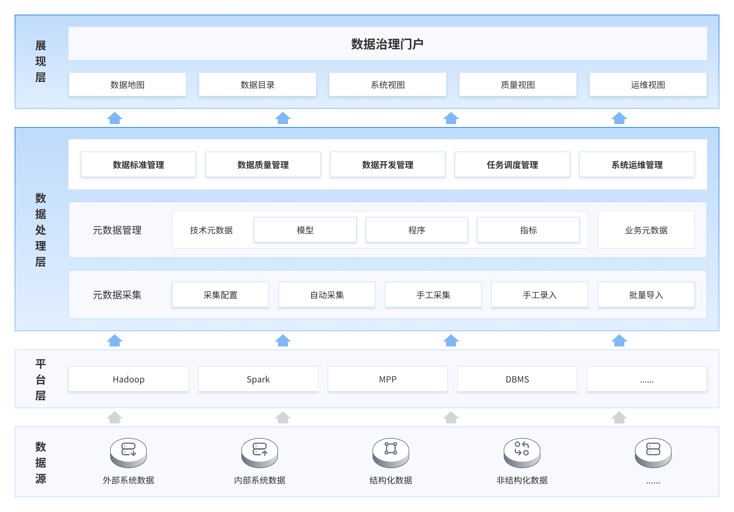達普信數據治理平臺以數據為核心貫穿數據全生命周期的管理。通過對異構數據環境的綜合管理,構建標準化、流程化、一體化的數據管理體系: